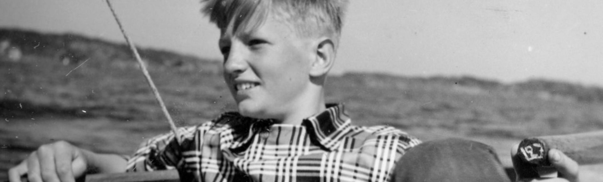 Bilderna visar en ung Göran seglande sin eka L-13 och priset Vitvingepokalen, ett vandringspris han tog för alltid efter att ha uppnått tre vinster.
